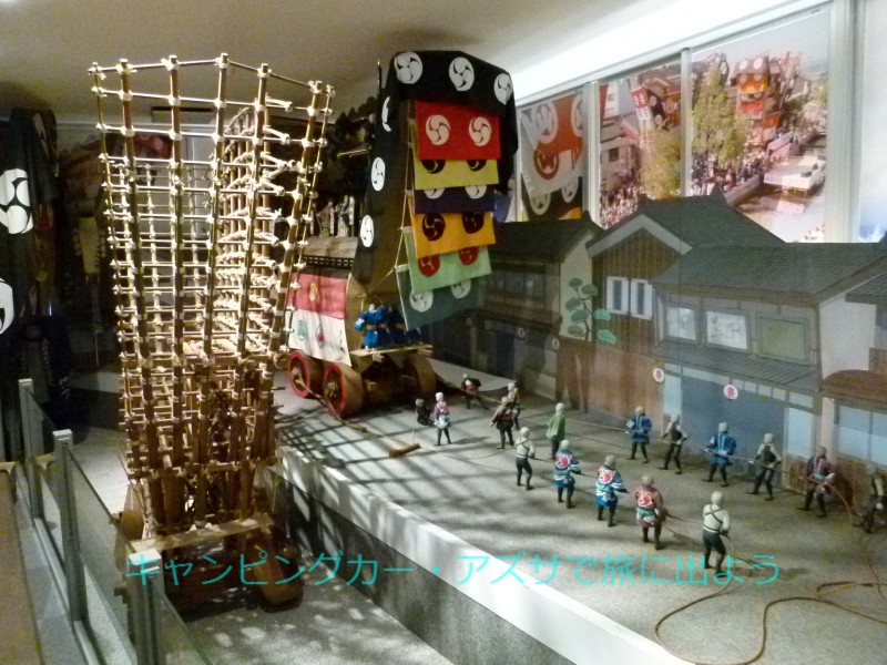この中の能登祭歳時館に、七尾の大祭・青柏祭(せいはくさい)の写真や曳山行事の情景模型などが展示されていた。曳山はここでは、でか山と呼ばれているだけのことはあり、写真からもその驚くほどの大きさが伝わってくる。