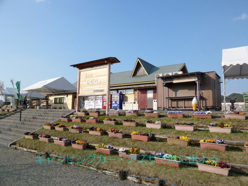 道の駅・むげ川をナビに設定して15時41分に出発する。北入口を出てすぐの津保川の橋のたもとのベイシア・関店に立ち寄り夕食の惣菜を購入。国道418号を行く。16時22分に道の駅・むげ川に到着。駅舎は駐車場より少し高いところに有る。その斜面にパンジーのプランターが、幾つも整然と並べられている。売店を覘くと、みたらし団子が半額になっていた。これは買わなくては。