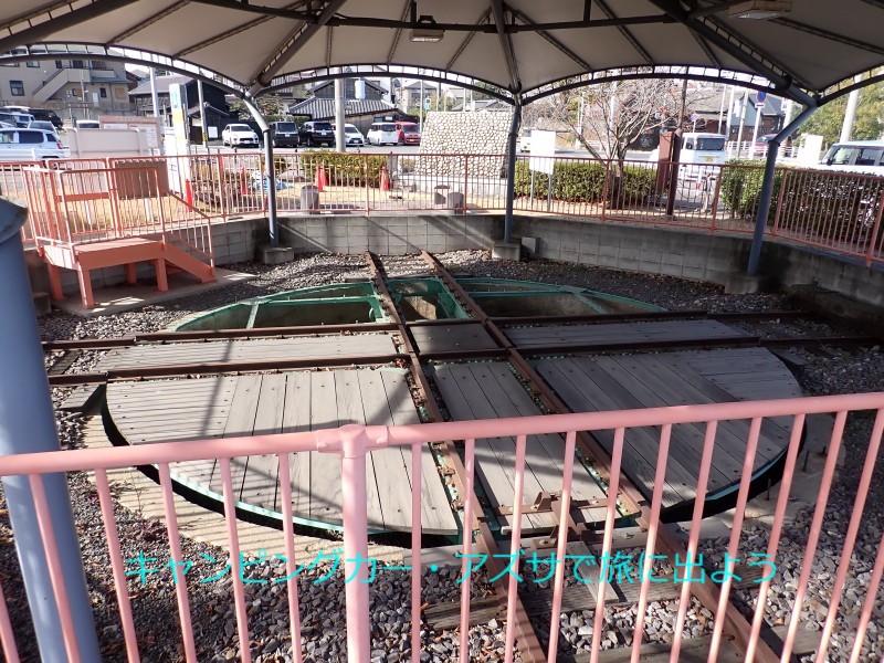 駐車場に戻り車中昼食。12時50分に出発。まちの駅・味の蔵たけとよへ向かう。15分で到着。近くにある旧国鉄武豊港駅跡地の直角二線式転車台を見学するのが目的。国内では武豊にしか現存していない。国の登録有形文化財だ。まちの駅で妻は「これはお値打ち」と日間賀島・島のり6パック詰めを購入。 |