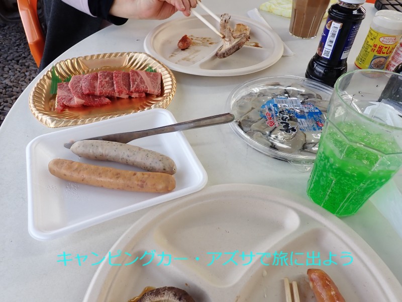 | 鮮魚市場や食事処などを併設している。12分で到着。昼食はここの浜焼きBBQだ。11時15分で昼食には少し早いがお店へ。手ぶらで行ってバーベキューが楽しめるのが魅力。入場料と食材を選んで購入するだけ。入場料には席料や用具一式に調味料や炭代、フリードリンクが付いている。火おこしも後片付けも不要。隣の鮮魚市場で買ってきたものも焼くことが出来る。牡蠣は殻付きしか無かったので急きょ市場へ買い出し。生食用のむき身を買って来てバーベキューにした。食後にもう一度市場へ。南知多の銘菓・波まくらと好物のししゃもの佃煮などを購入。13時半に出発。 |