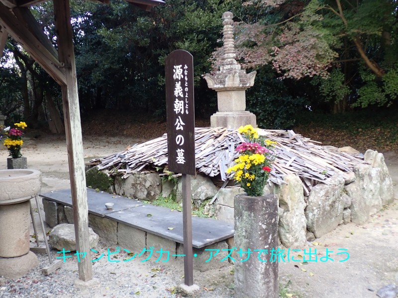 知多四国霊場第50番と51番札所である。源義朝の墓があることでも有名。義朝は頼朝(鎌倉殿)、義経(牛若丸)の父で、この地で亡くなった。平治の乱に敗れ東国へ逃れる途中、家臣の裏切りで入浴中に殺害された。「我れに木太刀の一本なりともあれば」と無念を叫んだとされ沢山の木太刀が奉納されて積み上がっていた。 |