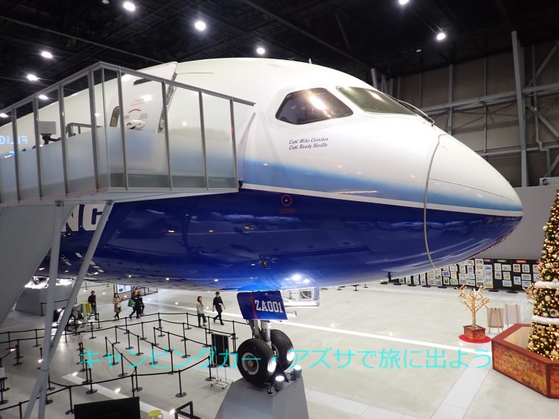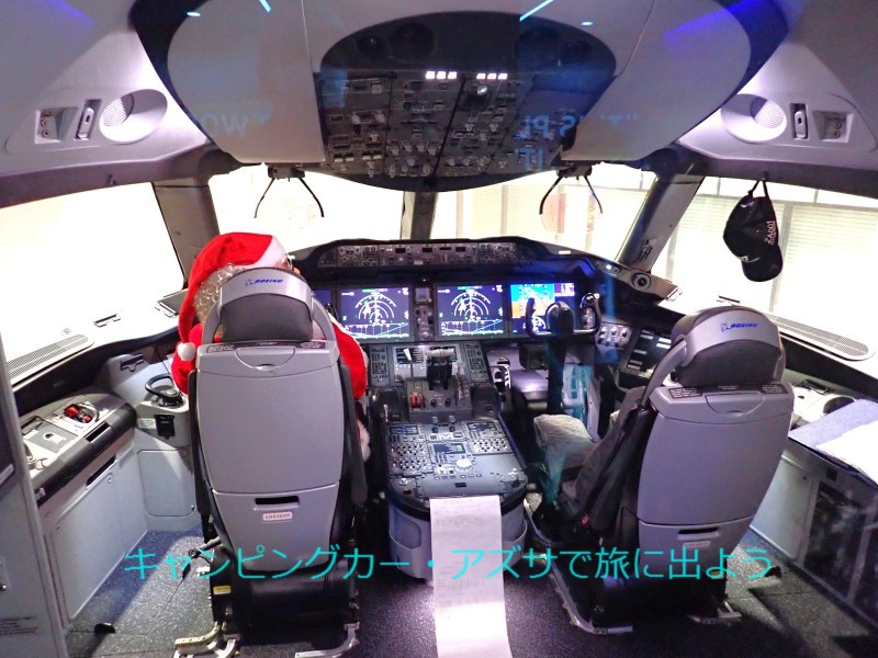 13時にセントレアにあるフライト・オブ・ドリームズに向かう。ボーイング787初号機を屋内展示する複合商業施設。りんくうICから中部国際空港連絡道路に入り、終点のセントレア東ICを下りる。出発から35分で到着した。駐車場はP1〜P4のエリアに分かれている。P2の平面駐車場に停めた。閉鎖エリアや高さ制限があるので要注意。P2エリアは複合商業施設から一番遠く850mくらいか。でも連絡通路には動く歩道があったので大助かり。屋内で見る機体は一段とでかく見えるね。コックピットにはサンタクロースが座っていた。 |